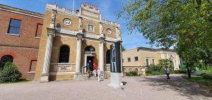 Thirty seven members of the Society boarded the coach in Grayshott first to visit Pitzhanger Manor in Ealing. Built by the famous neo-classical architect Sir John Soane between 1800 – 1804 as his country home in Walpole Park, Ealing, it now nestles in this busy London suburb. Soane intended it as his family country villa for entertaining guests and to showcase his skills as an architect and his collection of art and antiquities. Between 2016-2019 it received a £12M major restoration thanks to the Pitzhanger Manor Trust, Ealing Council and the Heritage Lottery Fund, with the aim of restoring Sir John Soane’s original architectural vision of the house. This has been beautifully achieved, displaying many of Soane’s neo-classical features of Roman columns, canopied and quartered dome ceilings, inset mirrors, wooden paneling and even marbled paint work in the entrance hall to imitate real marble, which was too cold a material for chilly England.