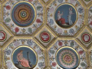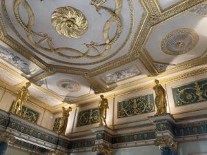 Syon takes its name from Syon Abbey, a monastery established in the early 15C which occupied the site until the reign of Henry VIII and the dissolution of the monasteries. A Tudor house was subsequently built on the same site but the name has always been retained. The house was substantially remodelled by Robert Adam in the late 18C giving it the grand ‘double cube’ rooms and typical Adam symmetrical wall and ceiling decoration – with liberal use of gold