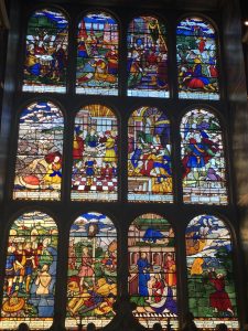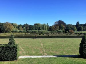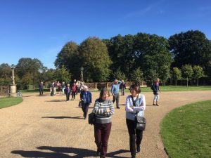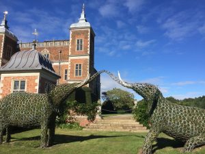 Drawing Room – still used by the familyWinter Dining RoomLong galleryLong GalleryThe LibraryStained glass in the chapelIn the chapelFrom the East GardenThe Maze – looks easy – about 3 foot high?Oh – no! The maze is about 12 foot high – it’s in a dipElephants in the East Garden (there was a baby one too)The Sundial – Old Palace in the backgroundIn the West GardenOld Palace GardenLooking towards the Old Royal PalaceGreat Hall of the Old Royal PalaceRoof of the Great HallThe West Garden (part) and the Old Royal Palace